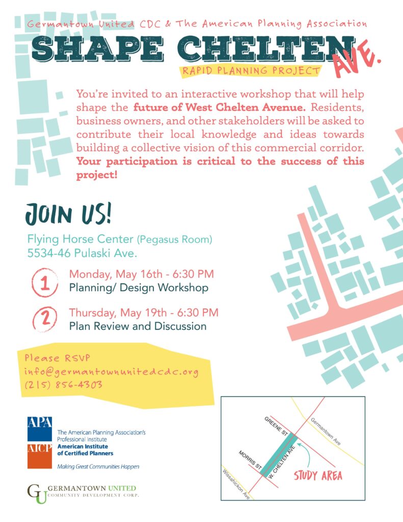Germantown United CDC is thrilled to announce the launch of an innovative initiative aimed at translating the essence of Germantown into a dynamic, cohesive visual identity. Through the creation of new logos, color palettes, and taglines, we plan to harness the power of place to align vision and message and foster a sense of unity in the community. This project will bring the neighborhood together and connect Germantown’s commercial corridors through a visual identity that respects Germantown’s enduring character, and celebrates its rich history and promising future.